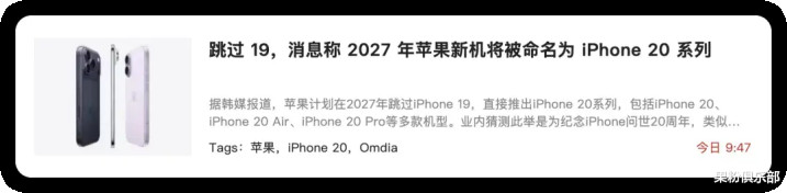 据韩媒报道,苹果很可能将遵循「X 惯例」,跳过 iPhone 19,直接将其命名为 iPhone 20 系列。
