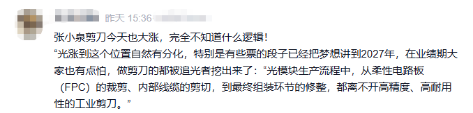 随着公司股价异动,有消息称张小泉(301055)工业剪刀业务已切入光模块、PCB、新能源(850101)等高端制造供应链。