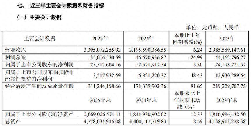 4月17日晚,乐山电力(600644.SH)交出了一份“喜忧参半”的2025年成绩单。2025年年报显示,去年公司实现营业收入33.95亿元,同比增长6.24%;归母净利润为2331.76万元,同比增长3.30%;但扣非归母净利润同比下滑48.43%至仅351.79万元。公司拟向全体股东每10股派发现金股利0.15元(含税)。
