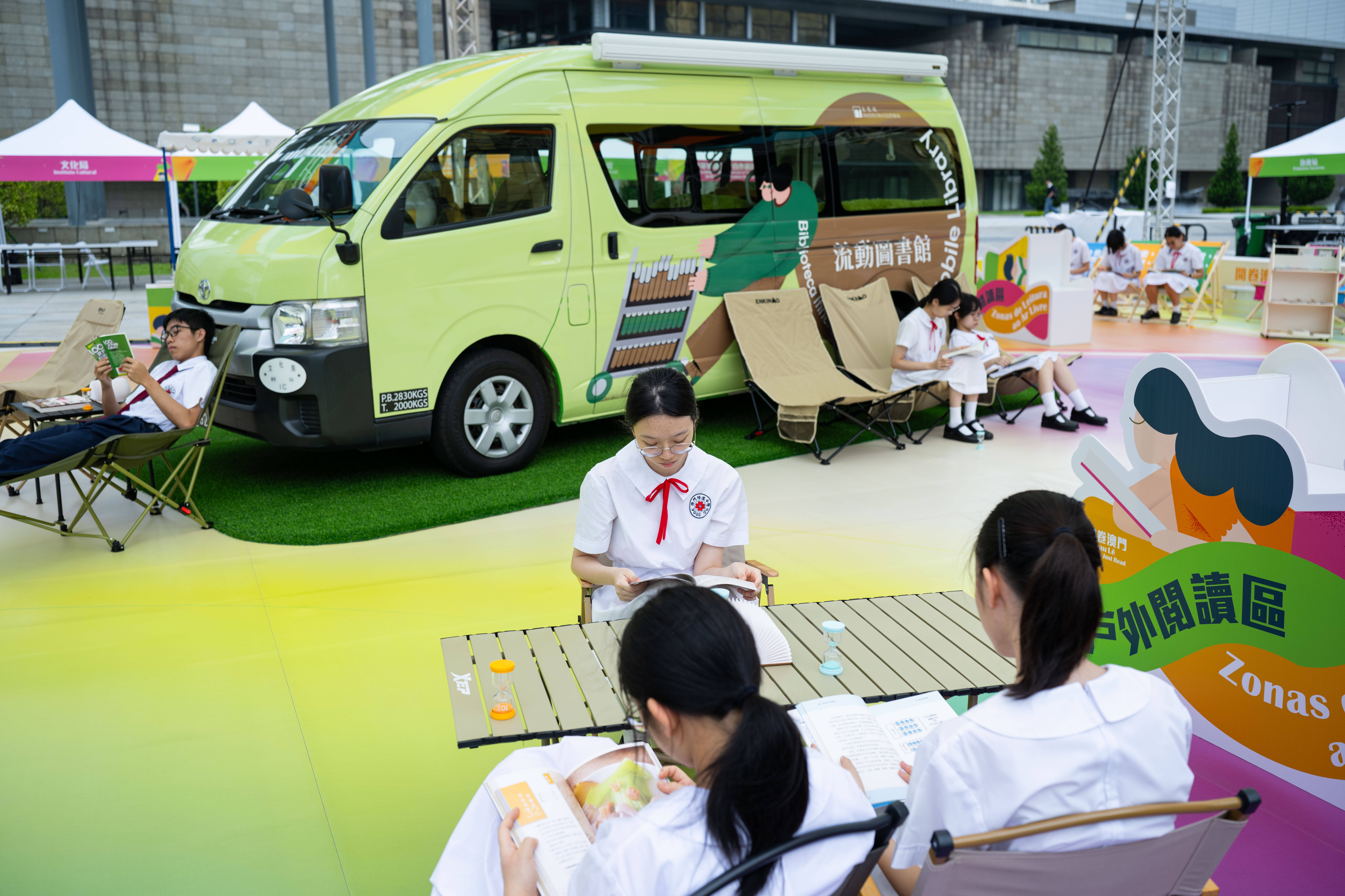 其中,澳门公共图书馆组织的流动图书车外展服务格外有特色。在氹仔海滨休憩区、望德堂、祐汉公园等地,流动图书车清新明快的草绿色设计十分亮眼,工作人员用地毯、休闲椅和靠垫等布置了温馨的户外阅读角,亲子图书、百科读物及小说等各类书籍错落摆放,市民游客可随时停下脚步,在公共空间里沉浸式享受书香乐趣。